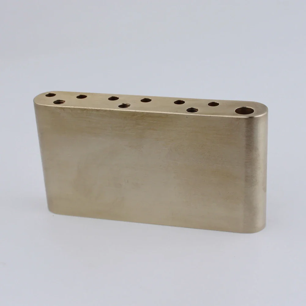 Give more character to your bends and riffs with a steel or brass block that’s denser than the common zinc alloy block.